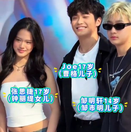 身旁的Joe(曹格之子),变化同样让人惊喜。今年17岁的他,身高已接近180cm,常年坚持运动让他身材健硕,手臂肌肉隐约可见,褪去了当年爱争玩具、略带腼腆的小男孩模样,长成了阳光开朗的大男孩。活动现场,他留着短卷发,一身休闲穿搭,不笑时酷劲十足,笑起来眉眼弯弯,亲和力拉满,还主动搂着邹明轩,看得出来两人私下关系十分要好。据悉,Joe如今不仅外形蜕变,更是早已开启恋情,成长速度远超预期。