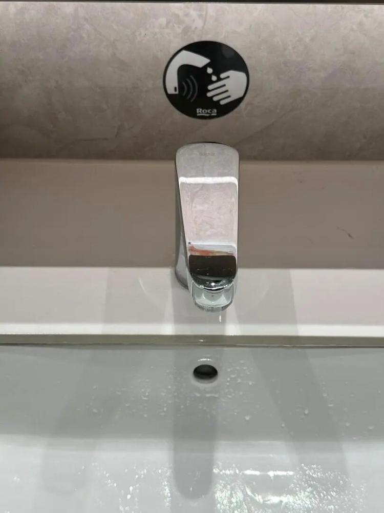 中关村大融城东区洗手间感应水龙头的感应区指示明确。