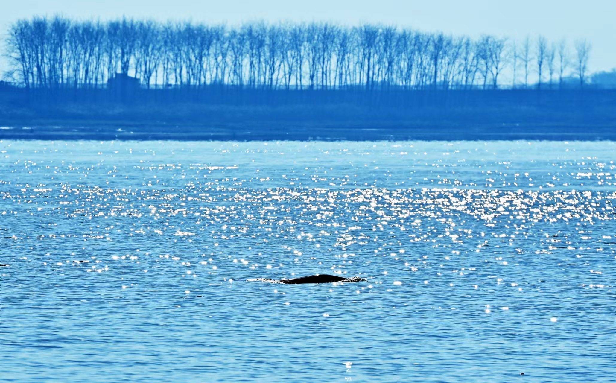 在长江武汉新洲段拍摄到的江豚戏水情景。新华社发(金振强 摄)陈诚说,针对施工可能带来的噪音,项目打造“静音工地”,将钢筋切割、焊接等高噪声作业转移至后场车间,并使用一体化智能筑塔机,实现主塔施工全封闭,配合环保搅拌站和隔音屏障,尽量降低施工声响,让江豚安心在桥畔活动。
