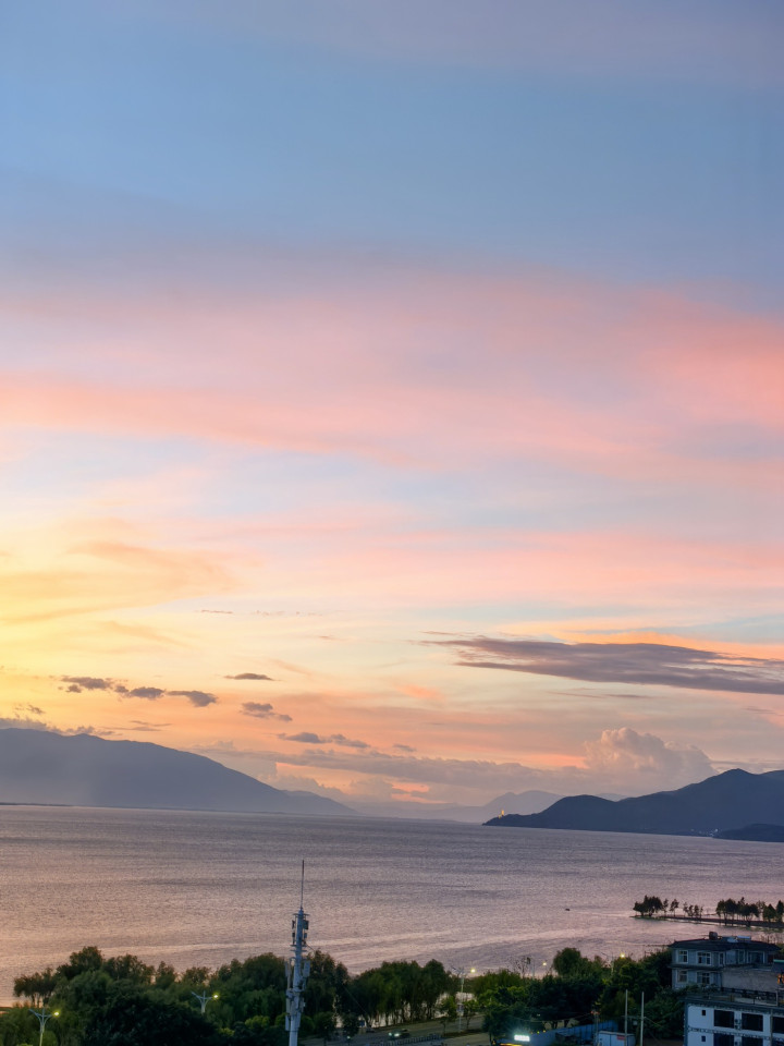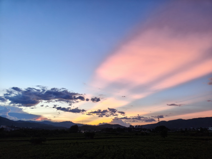 晚风轻拂,霞光漫过山腰