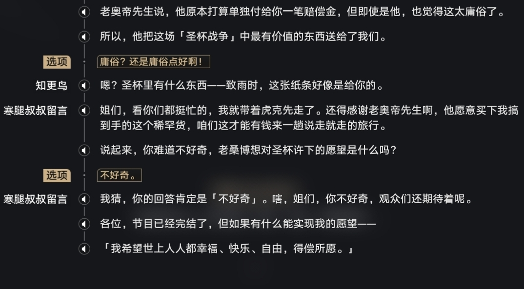 回顾在游戏中遇见的假面愚者,发现他们都还挺好的,虽说他们的理念是“为找寻乐子不惜一切代价,将所到之处搅得天翻地覆”,但实际上他们的乐子都是建立在尊重人的基础上开发的高级欢愉,对待其他人态度是“可以玩,但是不能玩死”,都有自己的梦想和底线。
