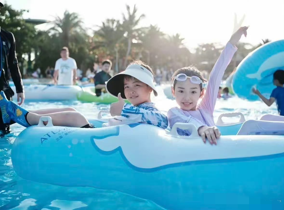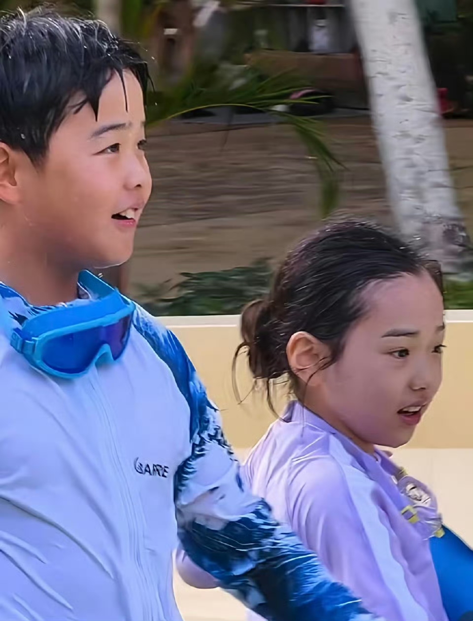 在水上乐园,小酒窝和朵朵的互动堪称经典。9岁的小酒窝性格外向,拉着朵朵勇敢挑战水上滑梯。曾被调侃“玩小黄人吓哭”的朵朵,如今也变身勇敢小勇士,紧紧握着小酒窝的手,一同体验刺激项目。这一幕,让网友们不禁感叹孩子们的成长与蜕变。而小酒窝帮朵朵整理泳帽的贴心举动,更是暖化了众人的心,仿佛让人看到了现实版的“神仙友谊”。