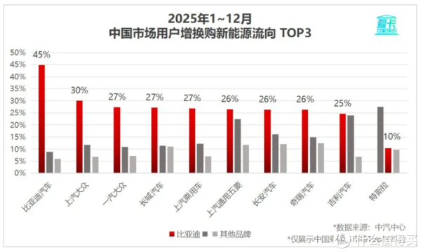 这还没完,它还比特斯拉高了将近8个百分点。要知道,特斯拉的车主忠诚度在圈里是出了名的,粉丝效应那叫一个强。结果呢?比亚迪不但没输,还甩开了身位。