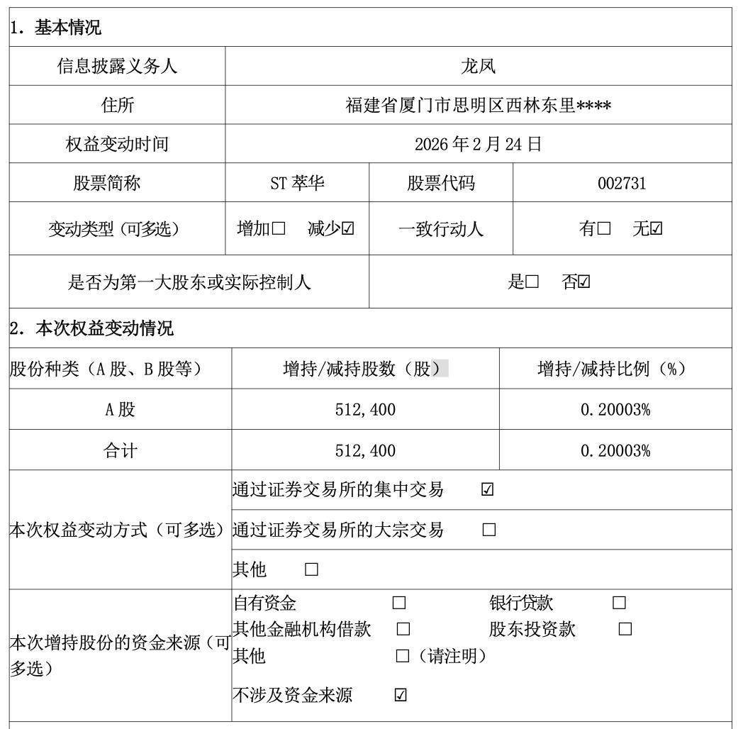ST萃华表示,公司股票于2月9日开市时起停牌一天,于2月10日开市时起复牌,复牌后公司股票被实施其他风险警示,股票简称由“萃华珠宝”变为“ST萃华”。