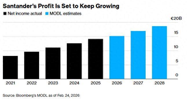过去几年,受利率上升推动,桑坦德银行的盈利能力大幅提升。其股价长期落后于同行,但在2025年翻了一番多,使该行成为欧洲大陆估值最高的贷款机构。