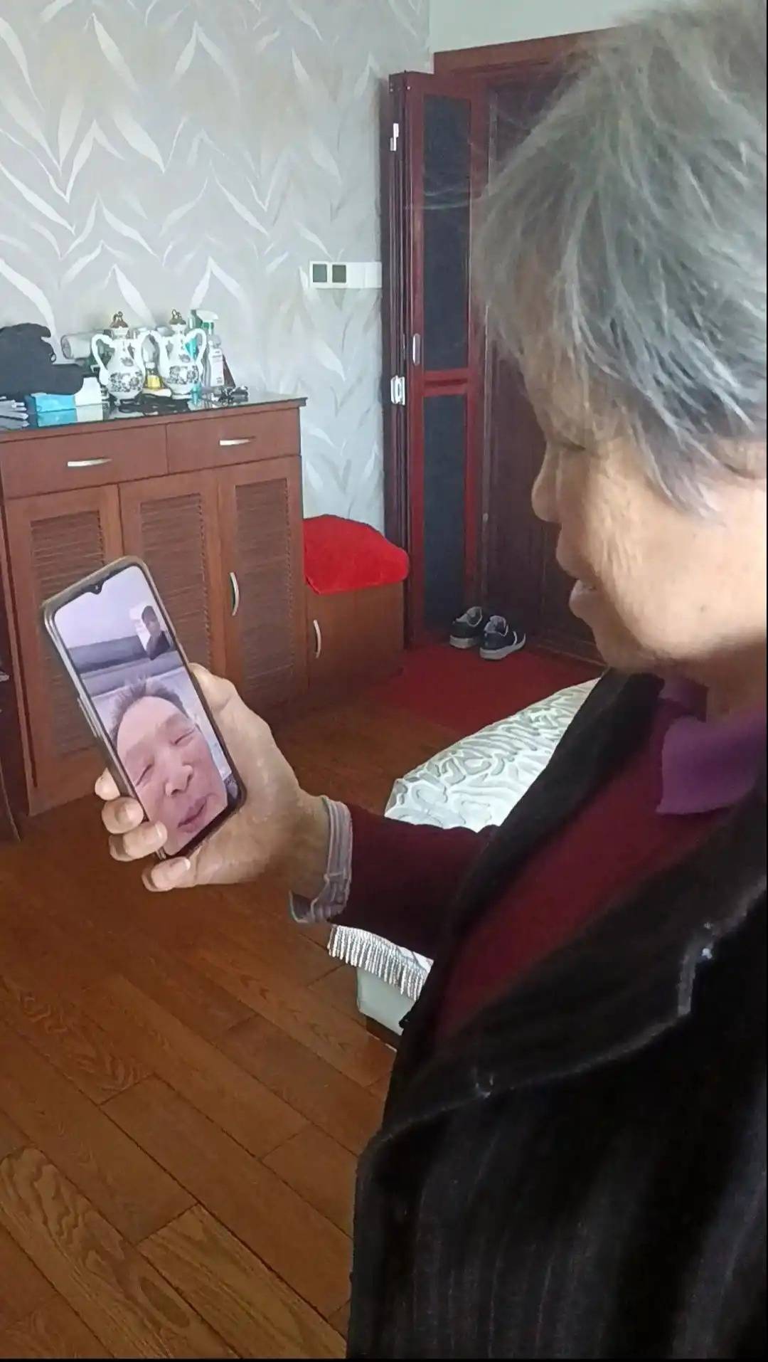 △两位老人通话。