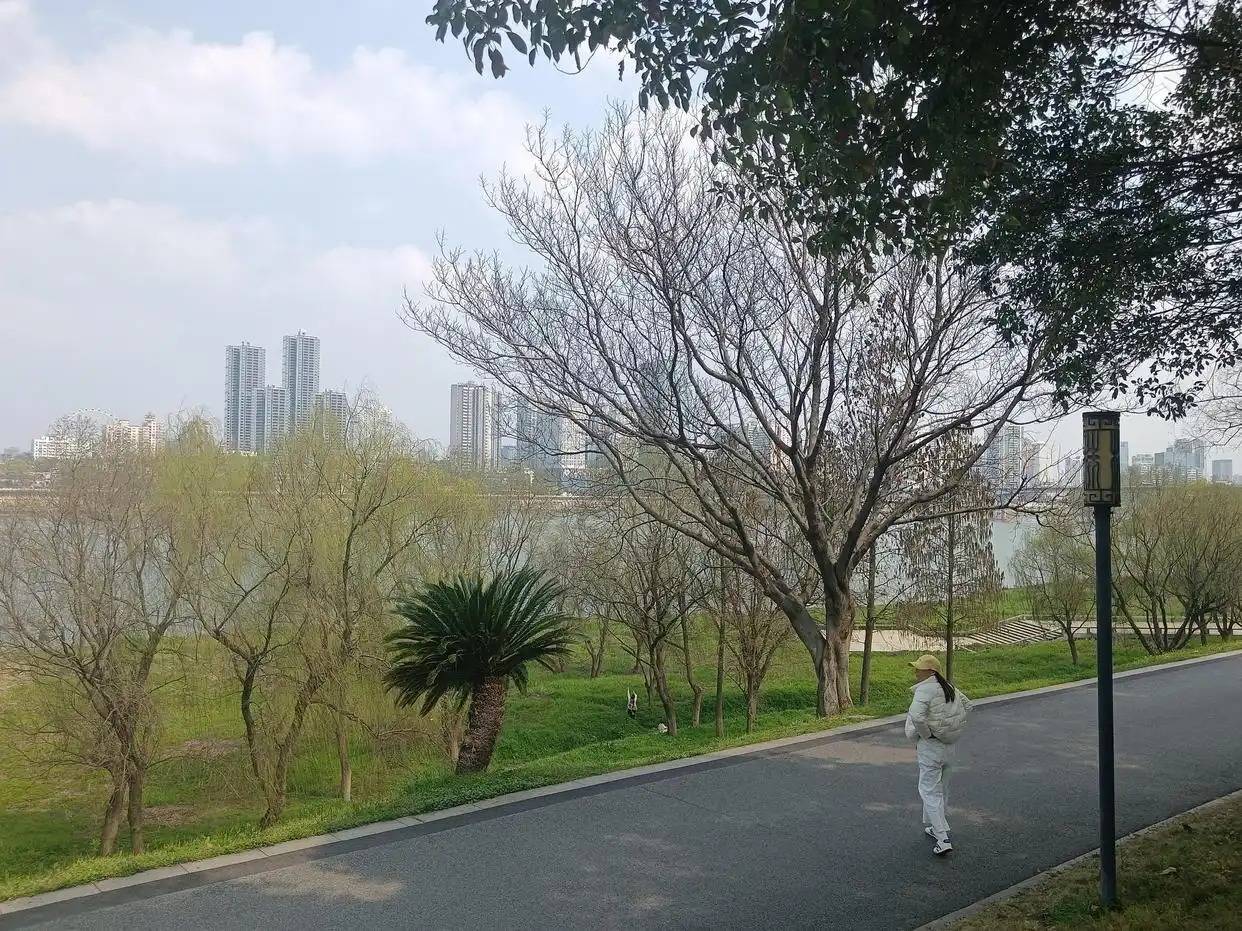 △株洲湘江边健身步道,市民在散步观景。