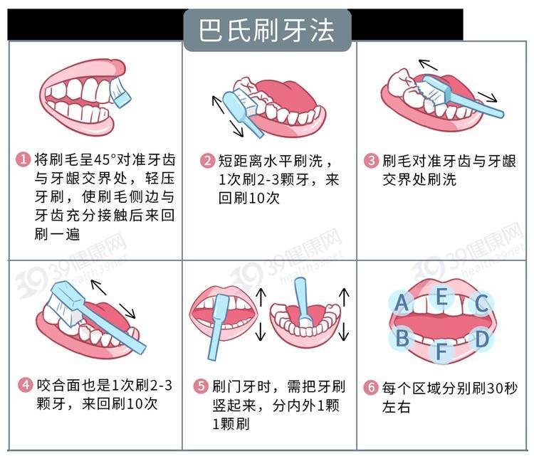 刷牙可以去除牙齿上的牙菌斑,建议每日要刷牙2~3次,尤其是睡前的刷牙千万不能省略。刷牙时建议采用巴氏刷牙法,分区域,每次刷牙2~3颗,直到刷完全口牙。